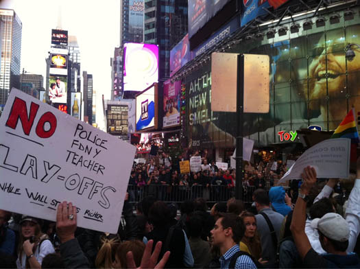 5:30 p.m. Thousands arrive in Time Square. Now livestreaming: http://www.livestream.com/occupywallstnyc