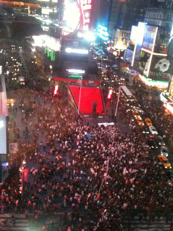 7:30 p.m. Unconfirmed estimates ranging as high as 50,000 people in Times Square.